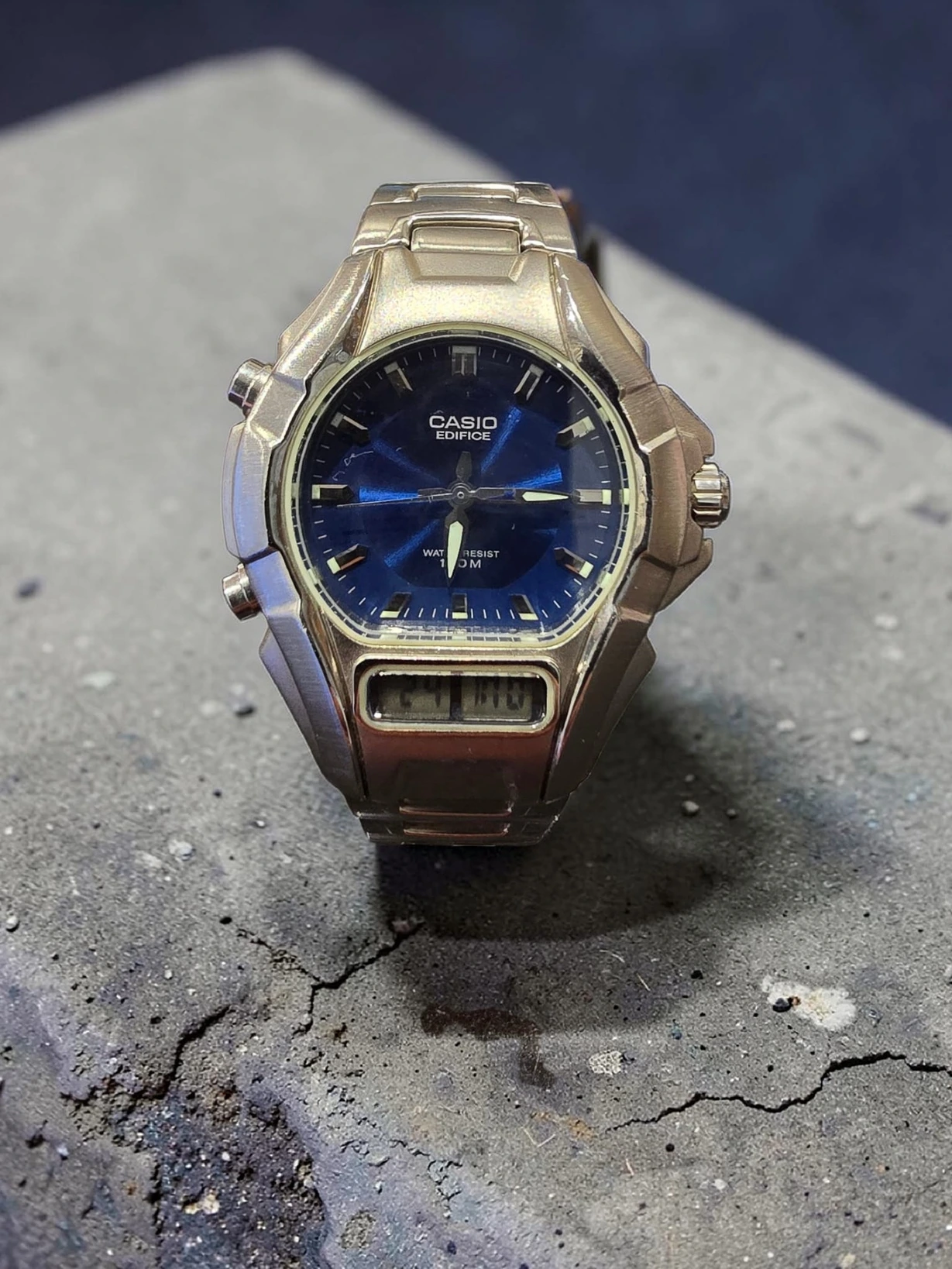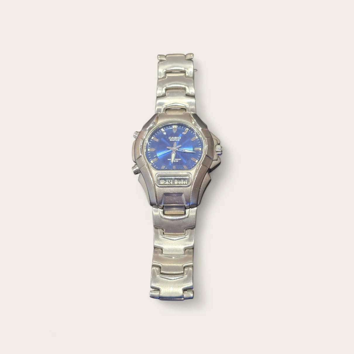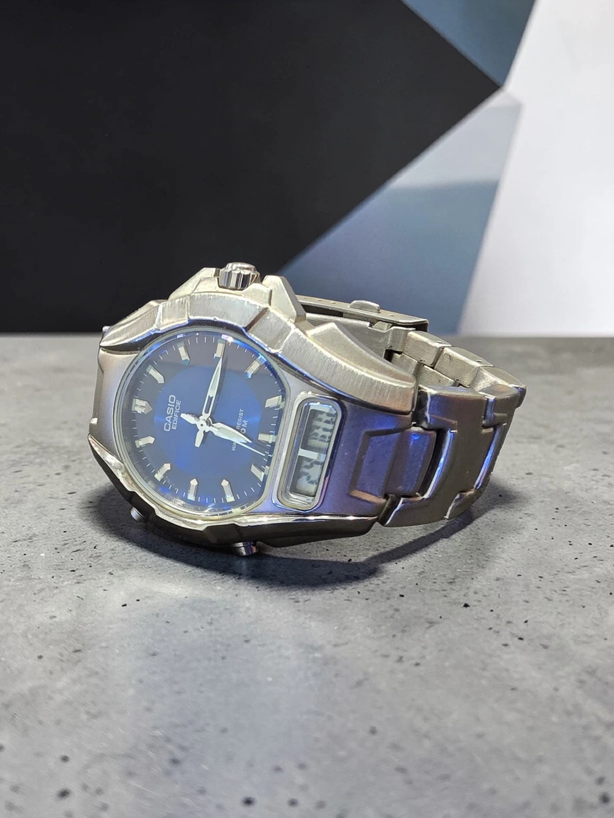Acest ceas Casio Edifice impresionează prin combinația dintre designul modern și funcționalitatea practică, oferind atât afișaj analog, cât și digital.
