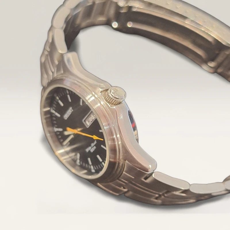 Carcasa din oțel inoxidabil și brățara metalică oferă durabilitate și confort, iar cadranul închis la culoare cu indicatoare contrastante asigură o lizibilitate foarte bună. Datorită dimensiunii echilibrate, acest ceas Orient poate fi purtat cu ușurință de orice persoană, fiind un model unisex.